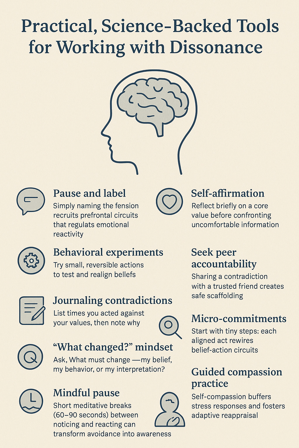 Limits and illusions: Because dissonance reduction often involves rationalization, it explains moral blind spots and self-deception, revealing both the resilience and fragility of consciousness.