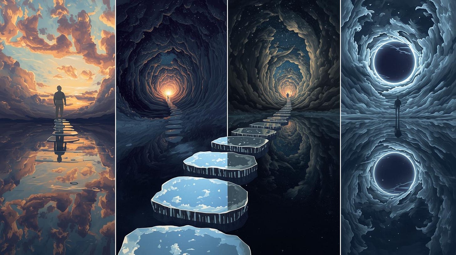 How knowing this helps: this discomfort is the subjective texture of a predictive system rewriting itself; dissonance exposes how beliefs act as simulations of future coherence, constantly being tested and revised. Selfhood becomes a living model that updates when experience contradicts expectation.